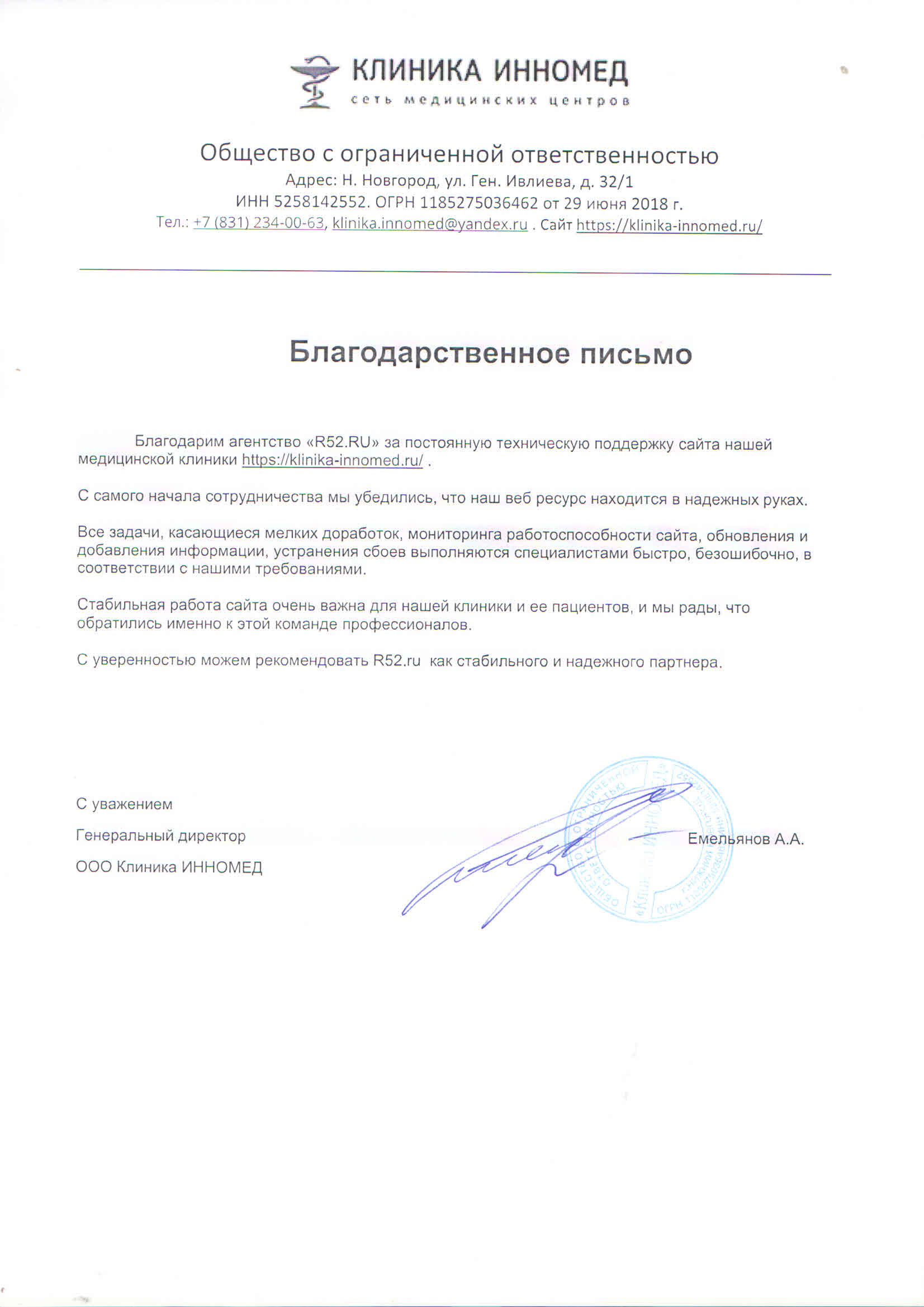 Благодарим команду «R52.RU» за креативный подход к работе, ответственность и пунктуальность. Мы довольны результатом и заинтересованы в продолжении сотрудничества.