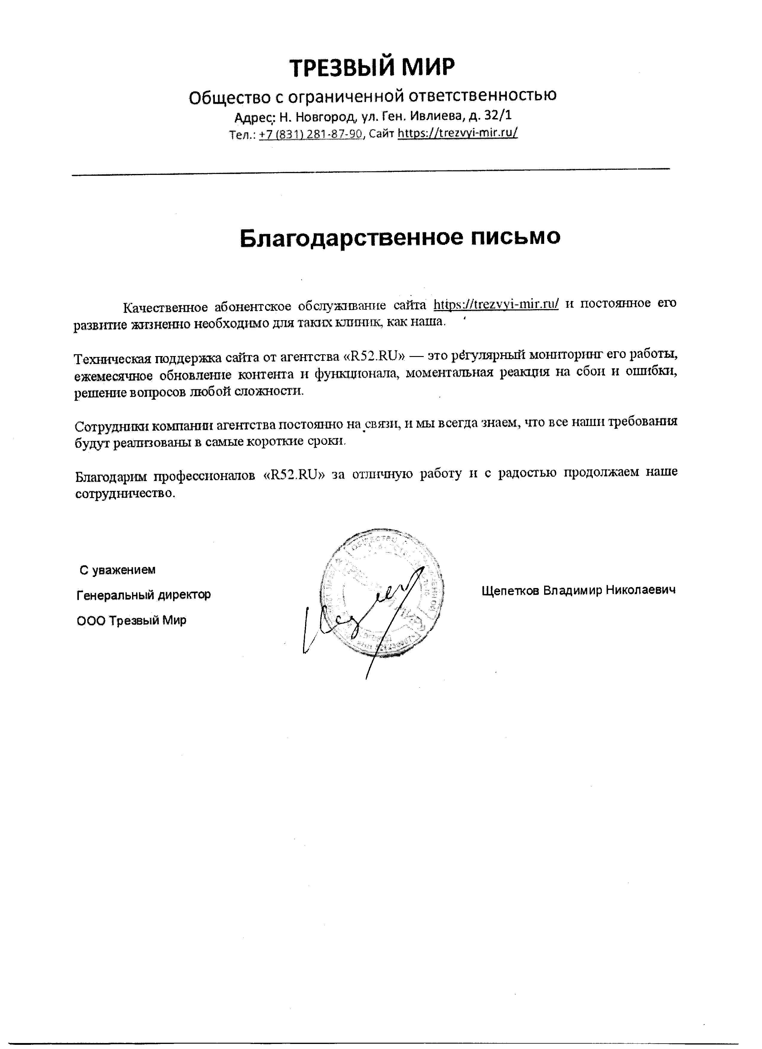 Благодарим профессионалов «R52.RU» за отличную работу и с радостью продолжаем наше сотрудничество.